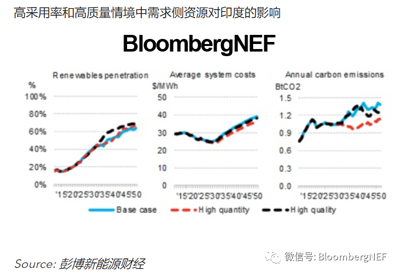 可用靈活需求量的上升對需求增長更快的市場(如印度)影響更大,而與之相對,靈活需求質(zhì)量的提升則更為利好加州這類太陽能占主導(dǎo)地位的市場。