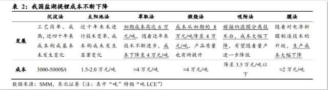 據(jù)東方證券研報(bào),南美鹽湖資源量大、鋰含量高、鎂鋰比低,可采用成熟、簡單的沉淀法。