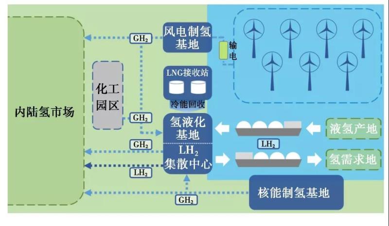 聯(lián)合風電制氫、核能制氫、液氫港口,耦合形成沿海特色氫源基地,可發(fā)揮氫作為實體能源的優(yōu)勢,助于氫實現(xiàn)對石油的替代,有利于向無碳社會過渡。