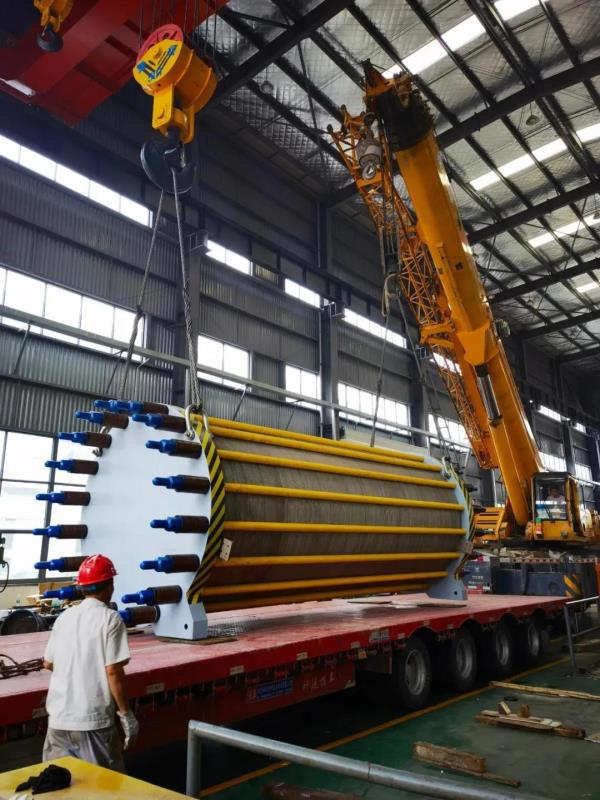 世界單體最大的產(chǎn)氫量1200Nm3/h的電解槽出廠,總重達(dá)52噸,采用2臺(tái)吊車裝車