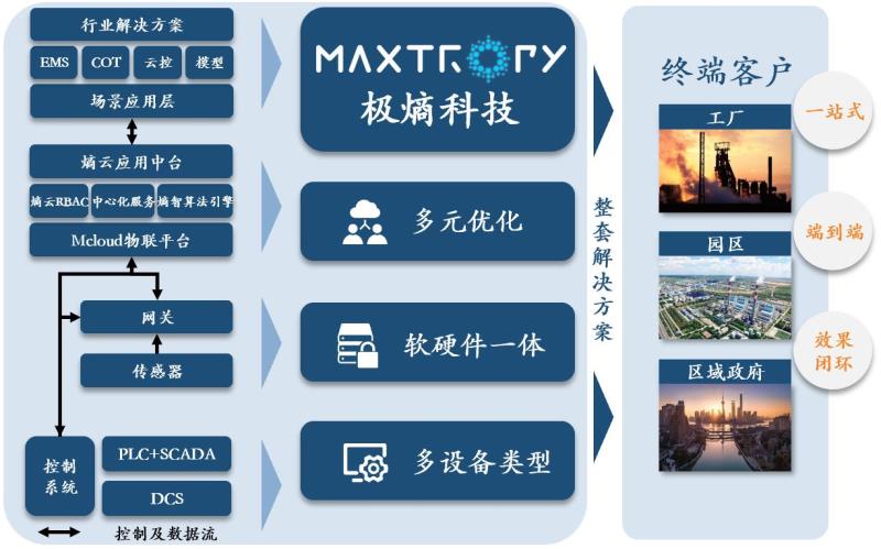 我們產(chǎn)品最突出的特點的就是極熵原創(chuàng)的領(lǐng)先技術(shù)內(nèi)核。這來源于極熵過去多年對智慧能源網(wǎng)絡(luò)這一復(fù)雜網(wǎng)絡(luò)優(yōu)化問題的長期探索?;跀?shù)據(jù)和人工智能的算法在這里賦予了極熵產(chǎn)品對于降碳、降本、增效、無人這一組多目標(biāo)優(yōu)化聯(lián)立方程的實時預(yù)測和解答能力,而極熵在應(yīng)用技術(shù)側(cè)的一整套自有知識產(chǎn)權(quán)邊緣計算設(shè)備、PaaS平臺和多個成熟原子級應(yīng)用的落地能力也保證了這一套算法在客戶側(cè)能夠快速實施并產(chǎn)生價值。