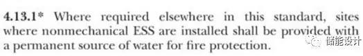 解讀:電化學儲能配置永久性的消防給水系統(tǒng)。國內(nèi)早期很多項目未設置水消防系統(tǒng),僅采用艙內(nèi)的七氟丙烷等滅火設施。目前,多數(shù)項目也均要求場站配置消防給水系統(tǒng)。