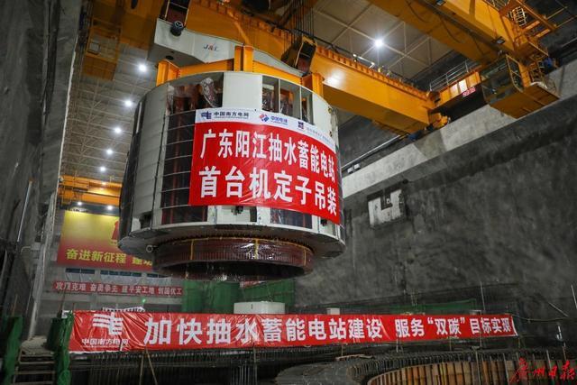 8月12日,陽江抽水蓄能電站(以下簡稱“陽江抽蓄電站”)首臺機組完成定子吊裝并下閘蓄水。陽江抽蓄電站總裝機容量240萬千瓦,單機容量40萬千瓦,是目前國內核準建設的單機容量最大、埋深最大的抽水蓄能電站。首臺機組計劃今年年內提前投產,將在電力供應偏緊情況時為廣東及時“充電”。