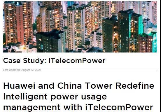 2021年初,華為站點能源聯(lián)合中國鐵塔在浙江開展智能用電管理創(chuàng)新試點,通過iTelecomPower替代現(xiàn)網(wǎng)傳統(tǒng)電源,實現(xiàn)設(shè)備級能耗可視可管、精準備電節(jié)省電池投資、遠程用電管理免人工下站,助力中國鐵塔節(jié)能減排、降本增效。該項創(chuàng)新節(jié)能減排效果顯著,于2021年8月12日入選GSMA(全球移動通訊系統(tǒng)協(xié)會)全球精品案例。