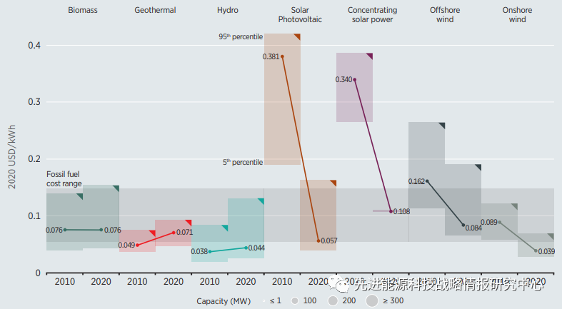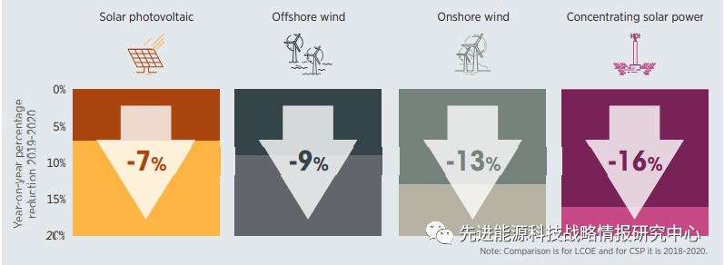 一、2020年太陽能和風(fēng)能發(fā)電成本持續(xù)下降,其中太陽能熱發(fā)電降幅最大