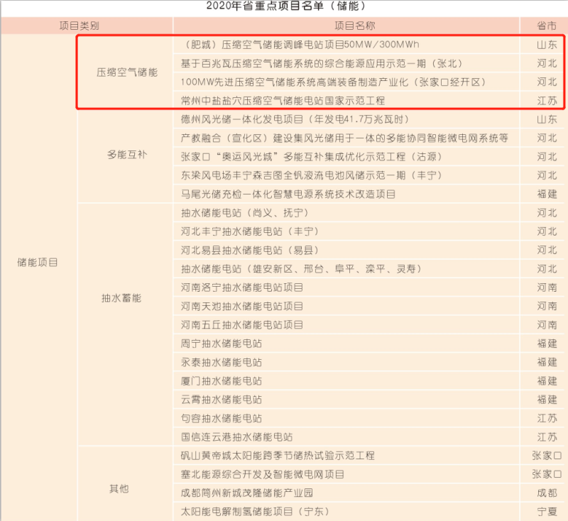 2019年7月份,由發(fā)改委辦公廳等四部門聯(lián)合制定了《貫徹落實(shí)<關(guān)于促進(jìn)儲(chǔ)能技術(shù)與產(chǎn)業(yè)發(fā)展的指導(dǎo)意見(jiàn)>2019-2020年行動(dòng)計(jì)劃》,提出了六大部分共16項(xiàng)具體措施。在先進(jìn)儲(chǔ)能技術(shù)研發(fā)方面,要求重點(diǎn)推進(jìn)大容量壓縮空氣儲(chǔ)能等重大先進(jìn)技術(shù)項(xiàng)目建設(shè),推動(dòng)百兆瓦壓縮空氣儲(chǔ)能項(xiàng)目實(shí)現(xiàn)驗(yàn)證示范。