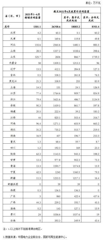 8月18日,國家能源局發(fā)布2021年上半年全國光伏發(fā)電建設(shè)運行情況。詳情如下: