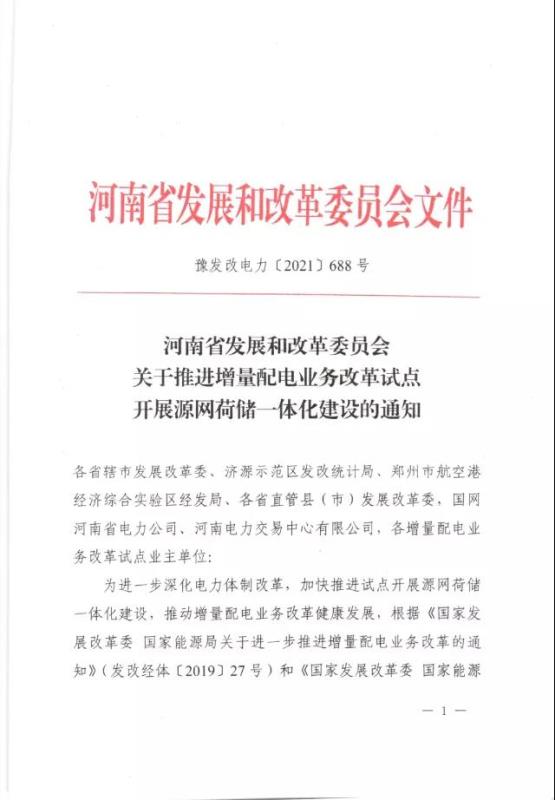8月19日,河南省發(fā)改委印發(fā)《關(guān)于推進增量配電業(yè)務改革試點開展源網(wǎng)荷儲一體化建設(shè)的通知》,就開展源網(wǎng)荷儲一體化建設(shè)和示范工程項目申報給出指導意見。