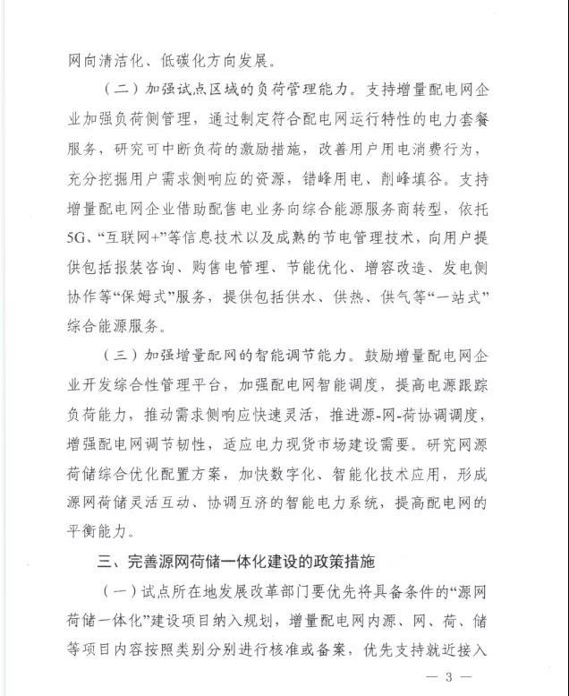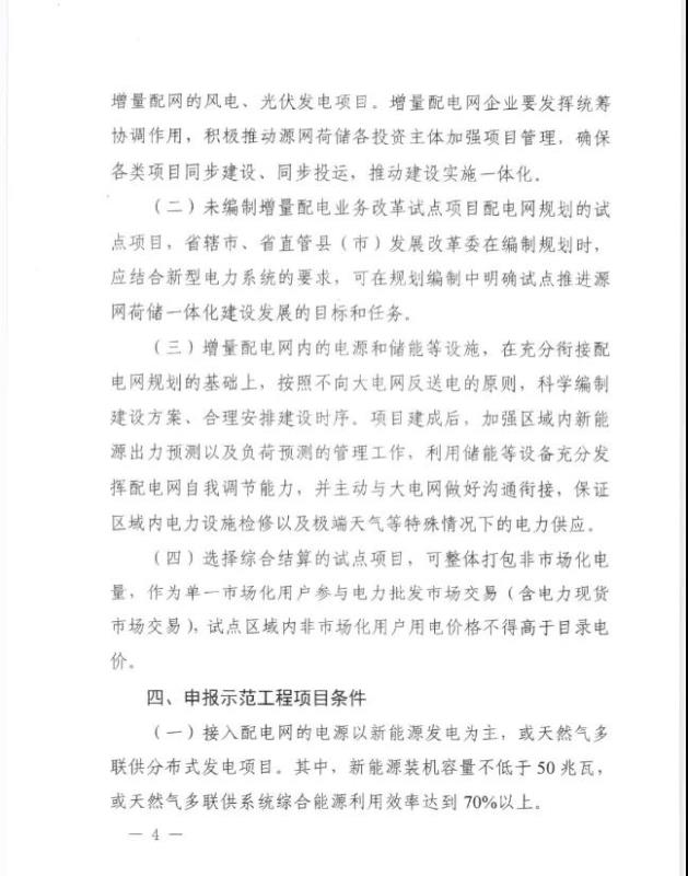 鼓勵各試點主體根據(jù)資源條件和用電特性合理配建一定比例的調(diào)節(jié)性、靈活性電源,支持符合政策且納入規(guī)劃的風電光伏發(fā)電項目、獨立電儲能以及分布式電源就近以適當電壓接入增量配電網(wǎng),就近消納。