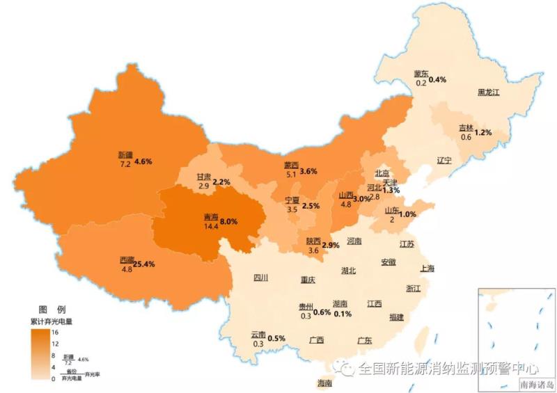 2020年全國棄光量(億千瓦時)、棄光率如下圖所示。
