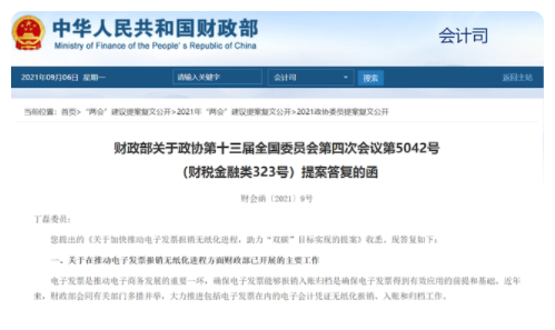 值得一提的是,這份提案同時還得到了國家財政部的回復。財政部表示,電子發(fā)票是推動電子商務發(fā)展的重要一環(huán),確保電子發(fā)票能夠報銷入賬歸檔是確保電子發(fā)票得到有效應用的前提和基礎。