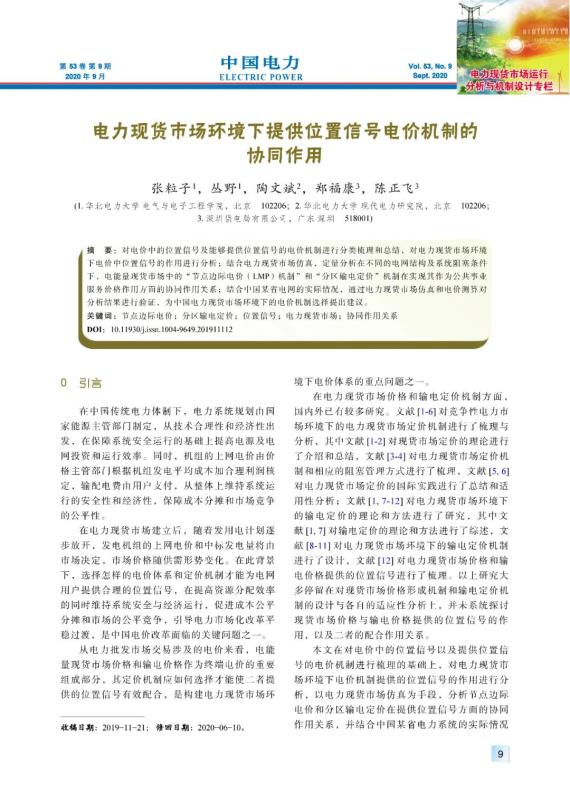 張粒子, 叢野, 陶文斌, 等. 電力現(xiàn)貨市場(chǎng)環(huán)境下提供位置信號(hào)電價(jià)機(jī)制的協(xié)同作用[J]. 中國電力, 2020, 53(9): 9-18, 46.