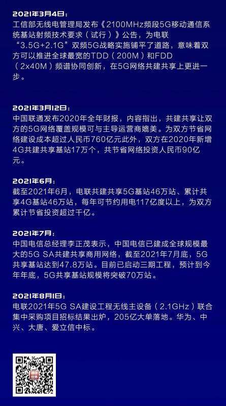 兩年中,隨著相關(guān)數(shù)據(jù)的不斷刷新,共建共享也走進(jìn)了深水區(qū)。最新數(shù)據(jù)顯示,截至2021年7月底,電聯(lián)雙方的 5G 共享基站已實(shí)現(xiàn)全國(guó)地級(jí)以上城市市區(qū)、發(fā)達(dá)縣城的室外 5G 信號(hào)基本連續(xù)覆蓋,以及一般縣城及鄉(xiāng)鎮(zhèn)的重點(diǎn)覆蓋,5G共享基站達(dá)47.8萬站,累計(jì)節(jié)省超千億。