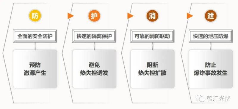 以山東萊州光儲項目的儲能系統(tǒng)為例,采用四層安全性設(shè)計,即防—護(hù)—消—泄的設(shè)計理念,覆蓋儲能電站全生命周期。