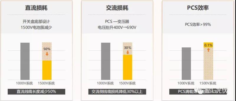 陽光電源的工程師算了一筆賬。當(dāng)儲能系統(tǒng)從1000V提高到1500V,