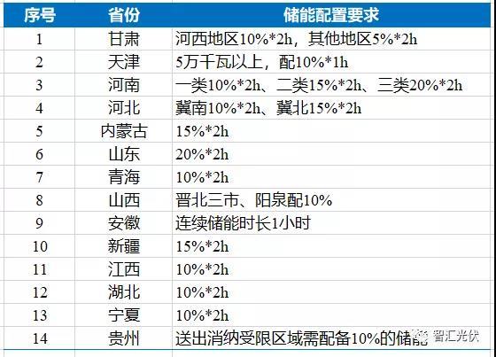 各省2021年保障性規(guī)模競爭性配置方案陸續(xù)下發(fā),除廣東、廣西等個別省份未明確提出配置儲能要求,至少有14個省提出了配置儲能的要求,具體如下表所示。