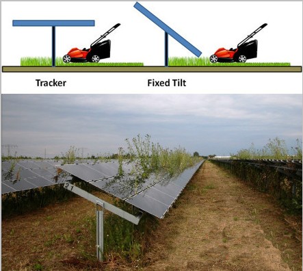 因設(shè)計不當(dāng),導(dǎo)致光伏電站運營后無法除草,雜草遮蓋了光伏組件