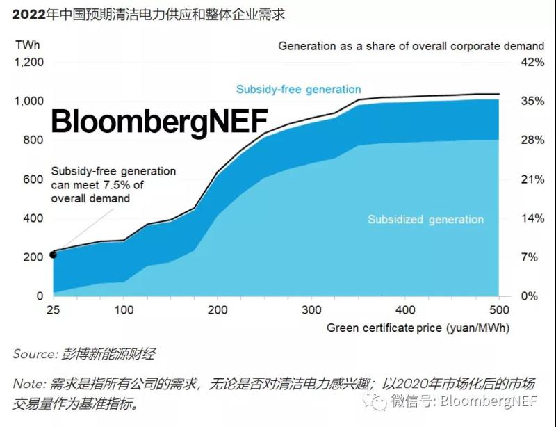 由于發(fā)電企業(yè)也可以將電力出售給電網(wǎng),有意參與綠電交易試點(diǎn)的企業(yè)將需要支付溢價,預(yù)計(jì)會比當(dāng)前電價高5-38%,利潤率不高或需求較大的企業(yè)可能會因此望而卻步。彭博新能源財經(jīng)預(yù)計(jì),2022年中國無補(bǔ)貼的電力將僅能滿足整體企業(yè)需求(無論企業(yè)是否對清潔電力感興趣)的7.5%。實(shí)際需求難以衡量,但市場在啟動之初預(yù)計(jì)將出現(xiàn)熱情迸發(fā)的局面。