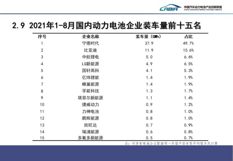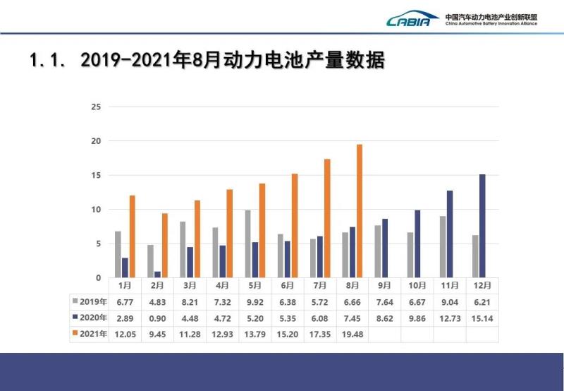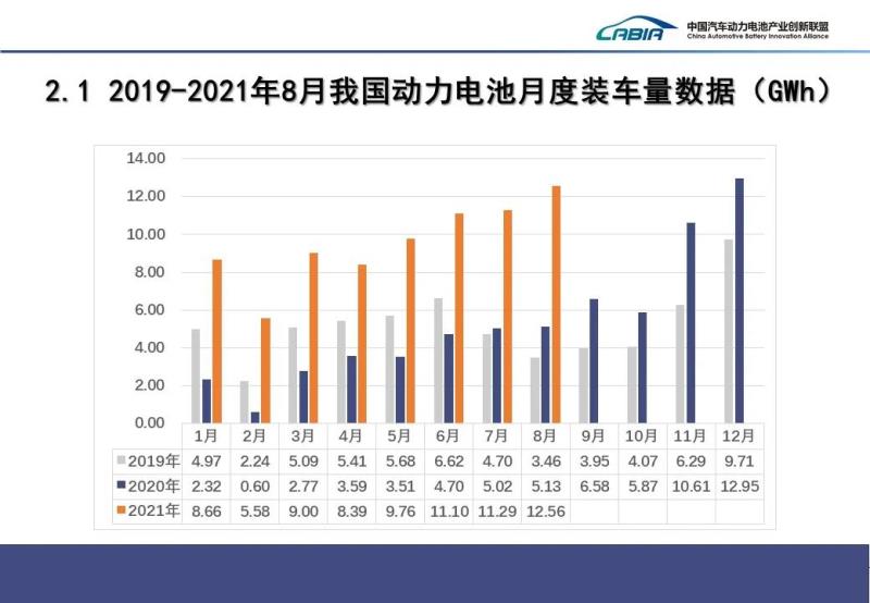 2021年8月份動力電池月度數據發(fā)布如下。
