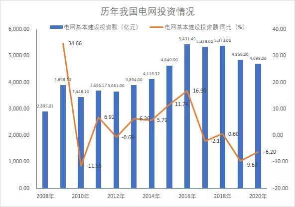 “十三五”期間,我國電網(wǎng)投資總體呈現(xiàn)下滑態(tài)勢,尤其是2020年電網(wǎng)投資只有4699億元,創(chuàng)“十三五”新低,引發(fā)了市場對電網(wǎng)投資下滑的擔(dān)心。