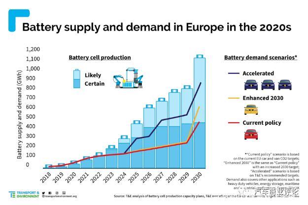 歐洲運(yùn)輸環(huán)境聯(lián)合會(huì)(以下簡(jiǎn)稱(chēng)T&E)的一份報(bào)告指出,歐洲想要依靠本土電池企業(yè)達(dá)到供應(yīng)量并不容易,期間仍然會(huì)嚴(yán)重依賴(lài)亞洲電池和技術(shù),這種情況甚至?xí)恢背掷m(xù)到2029-2030年。這也是在這輪“新基建”中,歐洲對(duì)于中國(guó)頭部企業(yè)給予了政策、財(cái)政等支持的原因所在。