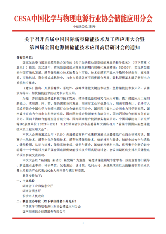 關(guān)于召開首屆中國(guó)國(guó)際新型儲(chǔ)能技術(shù)及工程應(yīng)用大會(huì)暨第四屆全國(guó)電源側(cè)儲(chǔ)能技術(shù)應(yīng)用高層研討會(huì)的通知