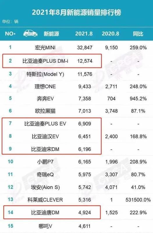 這一局面直到今年下半年才有所改觀。7月和8月比亞迪國(guó)內(nèi)銷(xiāo)量都超過(guò)了特斯拉,并在新能源汽車(chē)銷(xiāo)售總量上拿下全國(guó)第一。