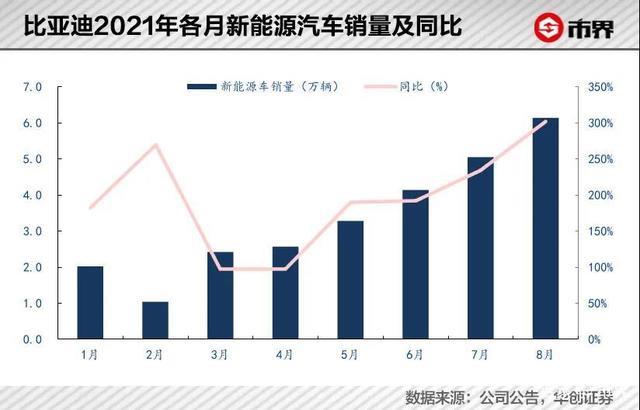 在眾多同行因?yàn)槿毙句N量下滑之時(shí),比亞迪8月銷量達(dá)到6.8萬輛,新能源銷量超過6萬輛,較去年同期增長超過300%。