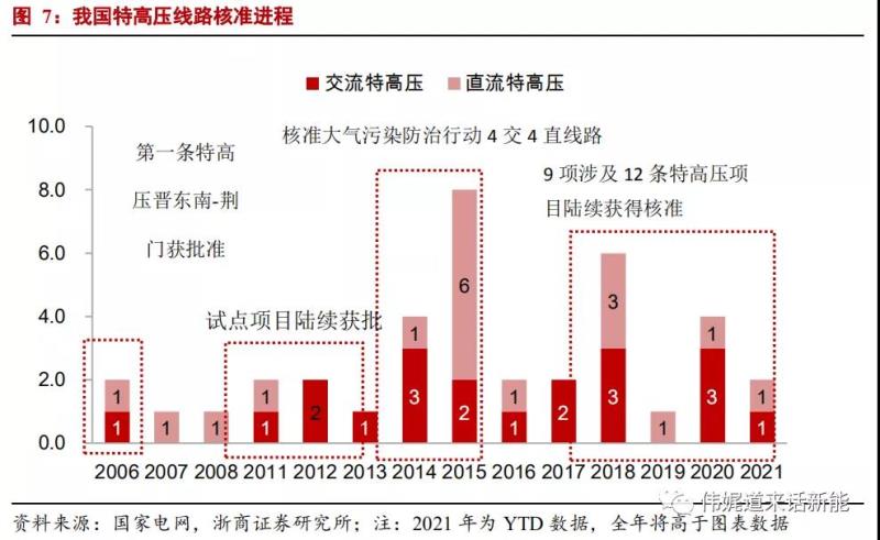 3、第二次建設(shè)高潮:2014 年為配合國(guó)務(wù)院《大氣污染防治行動(dòng)計(jì)劃》,能源局集中批復(fù)了一攬子輸電通道項(xiàng)目“小路條”;