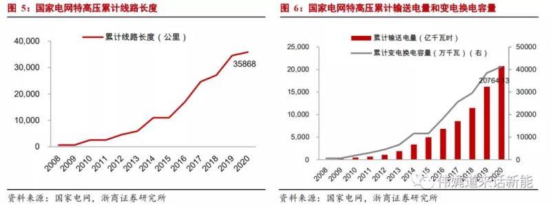 特高壓項(xiàng)目確實(shí)有效促進(jìn)了新能源外送。2020 年特高壓工程在運(yùn)在建線路長(zhǎng)度達(dá)到3.59 萬(wàn)千米,變電(換流)容量達(dá)到 4.1 億千瓦,特高壓電網(wǎng)累計(jì)輸送電量超過(guò)了 2.1 萬(wàn)億千瓦時(shí),2020 年當(dāng)年輸送電量 4567 億度,占當(dāng)年國(guó)網(wǎng)供電量的 10%。