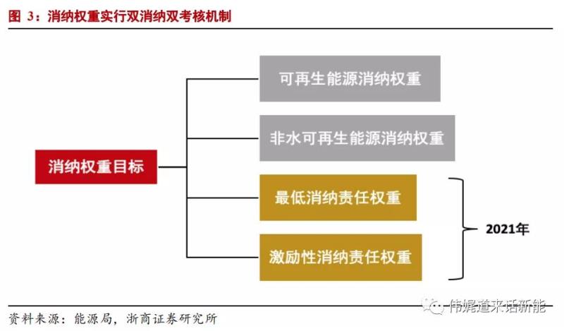 能源局下發(fā)非水可再生能源消納權(quán)重指標(biāo),并公布 2021 年各地消納責(zé)任權(quán)重建議。 2021 年 2 月,能源局下發(fā)了《關(guān)于征求 2021 年可再生能源電力消納責(zé)任權(quán)重和 2022—2030 年預(yù)期目標(biāo)建議的函》。文件指出,為了確保 2030 年全國(guó)非化石能源消費(fèi)占比達(dá)到25%,從 2021 年起將根據(jù)各省情況進(jìn)行消納責(zé)任權(quán)重規(guī)定。此外,考慮到 2021 年為責(zé)任執(zhí)行首年,能源局還一并公布了 2021 年各?。▍^(qū)、市)可再生能源發(fā)電量以及消納責(zé)任權(quán)重建議,同時(shí)規(guī)定全國(guó) 2021 年非水電責(zé)任權(quán)重最低為 12.7%。