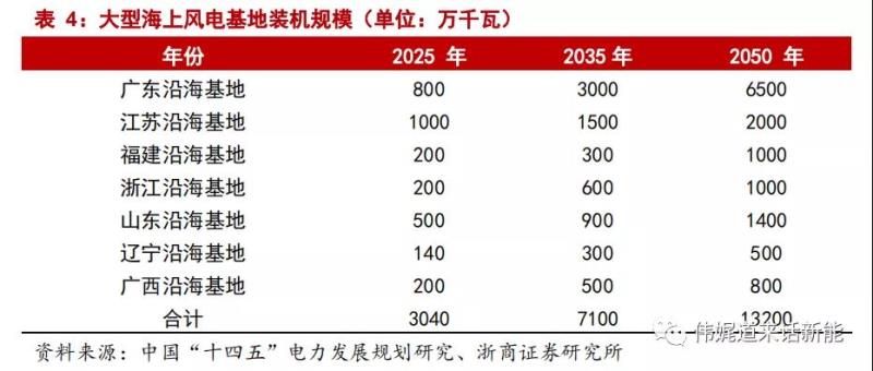 十四五期間將重點(diǎn)建設(shè)一體化大基地和海上風(fēng)電。2021年3月30日,《中華人民共和國(guó)國(guó)民經(jīng)濟(jì)和社會(huì)發(fā)展第十四個(gè)五年規(guī)劃和2035年遠(yuǎn)景目標(biāo)綱要》正式獲得通過(guò),《綱要》要求構(gòu)建現(xiàn)代能源體系,推進(jìn)能源革命,建設(shè)清潔低碳、安全高效的能源體系,提高能源供給保障能力。該方案重點(diǎn)提到加快非化石能源的發(fā)展,“建設(shè)一批多能互補(bǔ)的清潔能源基地,有序發(fā)展海上風(fēng)電,加快西南水電基地建設(shè)”。大型清潔能源基地主要包括:雅魯藏布江下游、金沙江下游、雅礱江流域、黃河上游和幾字灣、河西走廊、新疆、冀北、松遼等9個(gè)清潔能源基地,以及建設(shè)廣東、福建、浙江、江蘇、山東等5個(gè)海上風(fēng)電基地。