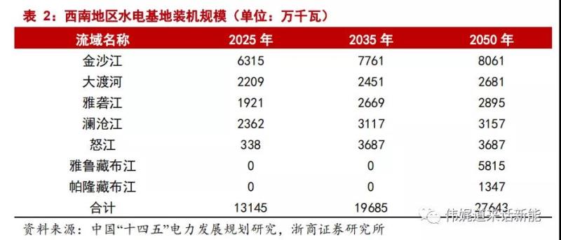 我國(guó)將持續(xù)開發(fā)水、風(fēng)、光在內(nèi)的多個(gè)清潔能源基地。根據(jù)《中國(guó)“十四五”電力發(fā)展規(guī)劃研究》,未來(lái)我國(guó)將持續(xù)重點(diǎn)開發(fā)包括水電、陸風(fēng)、海風(fēng)、光伏等電源在內(nèi)的多個(gè)清潔能源基地,進(jìn)而形成9個(gè)一體化能源基地的開發(fā)格局。分電源類型來(lái)看,預(yù)計(jì)到2025/2035/2050年,我國(guó)西南地區(qū)水電基地的總裝機(jī)規(guī)模將分別達(dá)到1.31/1.97/2.76億千瓦;陸上風(fēng)電基地的總裝機(jī)規(guī)模將分別達(dá)到0.8/2.55/3.98億千瓦;海上風(fēng)電基地的總裝機(jī)規(guī)模將分別達(dá)到0.3/0.71/1.32億千瓦;太陽(yáng)能發(fā)電基地的總裝機(jī)規(guī)模將分別達(dá)到0.56/3.09/5.46億千瓦。