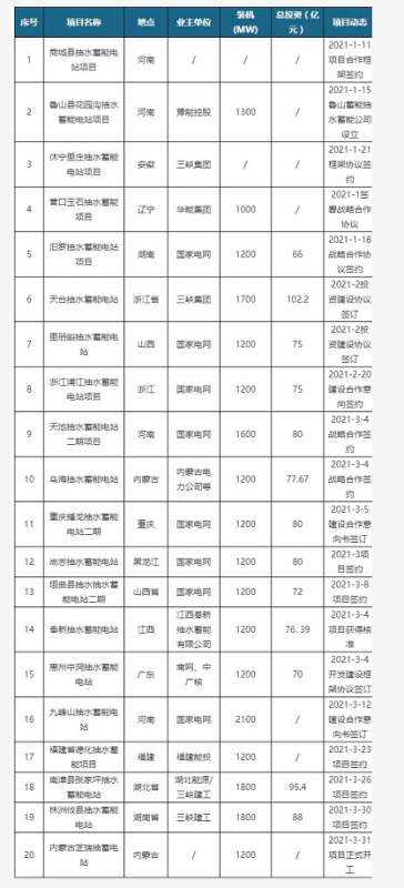 抽水蓄能項(xiàng)目簽約、核準(zhǔn)、開(kāi)工等(表一)