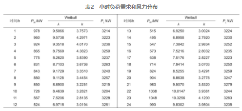 表2 小時(shí)負(fù)荷需求和風(fēng)力分布