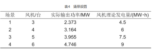 考慮到風(fēng)電場(chǎng)裝配的FD70b風(fēng)力渦輪機(jī)每小時(shí)平均輸出功率僅為791 kW,而工廠負(fù)荷需求已達(dá)到每小時(shí)3241 kW,故需要維持風(fēng)電場(chǎng)每時(shí)有適宜數(shù)量的風(fēng)力發(fā)電機(jī)組正常運(yùn)行,才可保證系統(tǒng)間的電力平衡。鑒于上述原因,逐時(shí)分析風(fēng)機(jī)規(guī)模對(duì)系統(tǒng)運(yùn)行經(jīng)濟(jì)性的影響,確定合理的風(fēng)機(jī)調(diào)度策略是具有可行性的。因此,設(shè)置多種場(chǎng)景對(duì)比選取適宜風(fēng)電場(chǎng)的風(fēng)機(jī)規(guī)模,其場(chǎng)景設(shè)置見表4。