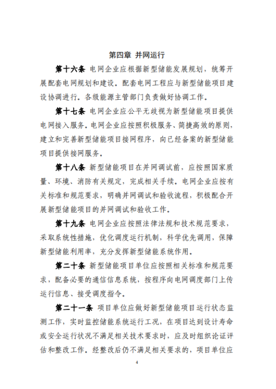 第三條 新型儲(chǔ)能項(xiàng)目管理堅(jiān)持安全第一、規(guī)范管理、積極穩(wěn)妥原則,包括規(guī)劃布局、備案要求、項(xiàng)目建設(shè)、并網(wǎng)接入、調(diào)度運(yùn)行、監(jiān)測(cè)監(jiān)督等環(huán)節(jié)管理。
