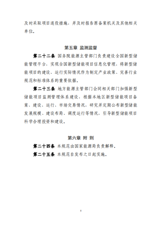 第二十二條 國(guó)務(wù)院能源主管部門(mén)負(fù)責(zé)建設(shè)全國(guó)新型儲(chǔ)能管理平臺(tái),實(shí)現(xiàn)全國(guó)新型儲(chǔ)能項(xiàng)目信息化管理,將新型儲(chǔ)能項(xiàng)目的建設(shè)、運(yùn)行實(shí)際情況作為制定產(chǎn)業(yè)政策、完善行業(yè)規(guī)范和標(biāo)準(zhǔn)體系的重要依據(jù)。
