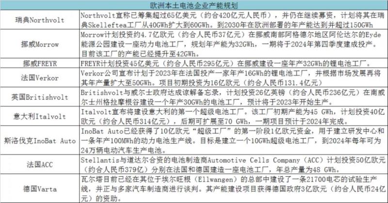 其中,該資助計劃向Northvolt、ACC等為代表的歐洲本土電池企業(yè)傾斜力度更大,表明歐盟對建立歐洲本土規(guī)模生產(chǎn)供應(yīng)能力的意愿更為強(qiáng)烈。