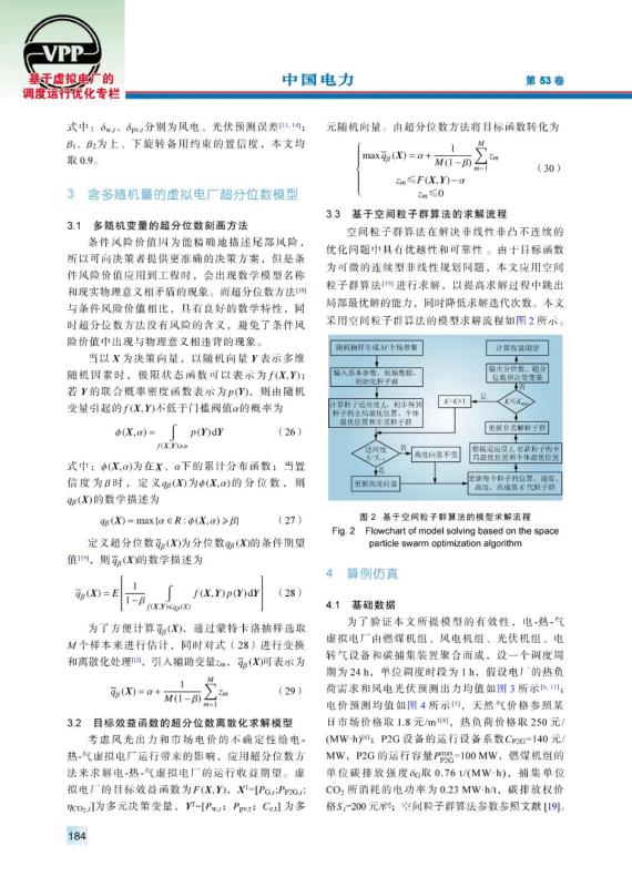 摘要:虛擬電廠總體降低了不確定因素的影響,但若不考慮其內部的隨機性,則會使虛擬電廠在參與電力、天然氣市場過程中,因其調度方案的保守性,難以獲得最高的經濟效益。為了充分挖掘虛擬電廠的經濟效益,提出了一種氣電市場下計及電價和風光不確定性的電-熱-氣虛擬電廠隨機優(yōu)化調度模型。模型目標函數(shù)為虛擬電廠總效益,即售電售熱售氣收益與電轉氣成本、碳捕集成本、碳排放權成本和燃料成本之差。引入超分位數(shù)方法將含多隨機變量的虛擬電廠總效益最優(yōu)模型轉化為其超分位數(shù)隨機優(yōu)化模型,為了便于計算進而處理為其離散化計算模型,并利用空間粒子群算法進行求解。算例分析表明:虛擬電廠通過優(yōu)化售電和售氣方案來獲得最優(yōu)效益,在參與氣電市場過程中考慮多種隨機變量,使得虛擬電廠規(guī)避風險后有更多的機會獲得更高的經濟效益。
