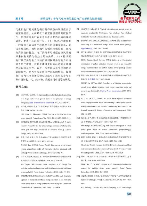 彭院院, 周任軍, 曾子琪, 等. 參與氣電市場的虛擬電廠內部優(yōu)化隨機模型[J]. 中國電力, 2020, 53(9): 181-188.