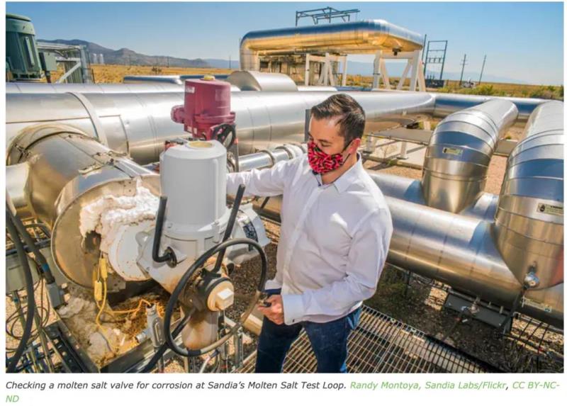 光熱太陽(yáng)能聚焦發(fā)電仍然相對(duì)昂貴,為了與其他形式的能源生產(chǎn)和儲(chǔ)存競(jìng)爭(zhēng),光熱發(fā)電需要提高效率。實(shí)現(xiàn)這一目標(biāo)的一種方法是提高鹽的加熱溫度,從而實(shí)現(xiàn)更高效的電力生產(chǎn)。不幸的是,目前使用的鹽在高溫下不穩(wěn)定。研究人員正在努力開(kāi)發(fā)新的鹽或其他材料,可以承受高達(dá)705攝氏度的溫度。如何達(dá)到更高溫度的一個(gè)主要想法是加熱沙子而不是鹽,因?yàn)樯匙涌梢猿惺芨叩臏囟?。美?guó)能源部最近根據(jù)這一概念,為一個(gè)示范性光熱太陽(yáng)能發(fā)電廠提供資金。