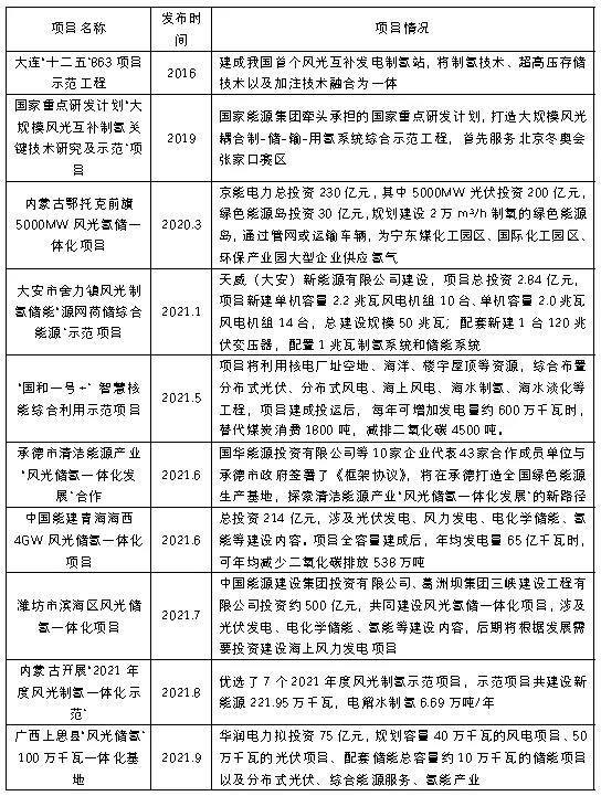 表1 近年我國風(fēng)光氫儲項目建設(shè)情況匯總