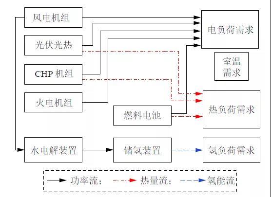 圖1 包含風(fēng)光制氫儲能裝置的綜合能源系統(tǒng)