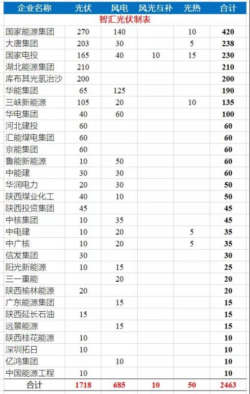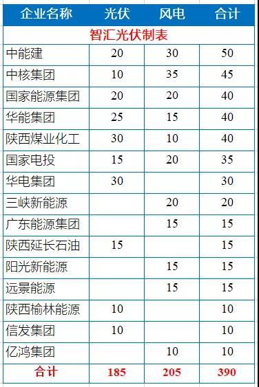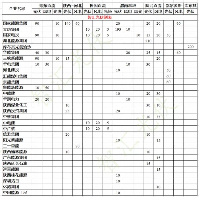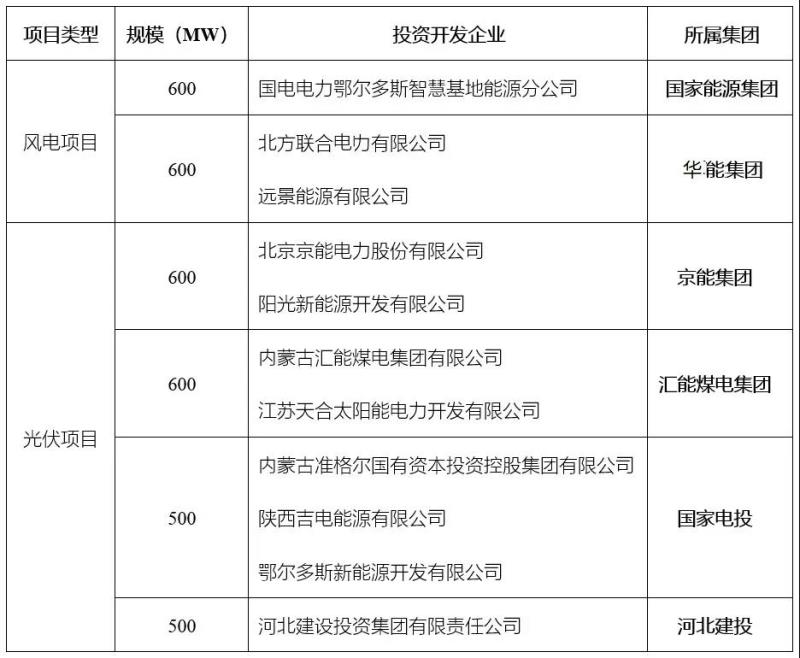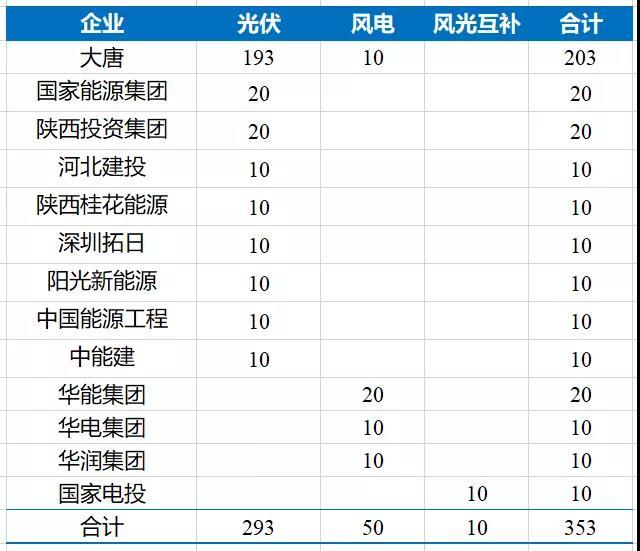 國家能源集團、陜西投資集團、華能集團:每家獲得20萬千瓦的規(guī)模;