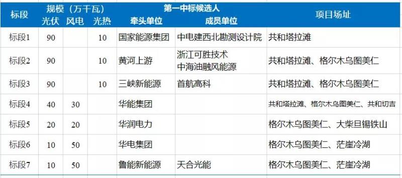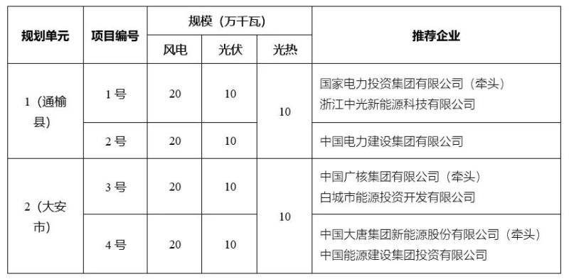 9月23日,白城市政府公示了競爭性優(yōu)選結(jié)果。四個標段分別由:國家電投、中電建、中廣核、大唐獲得,具體如下表所示。