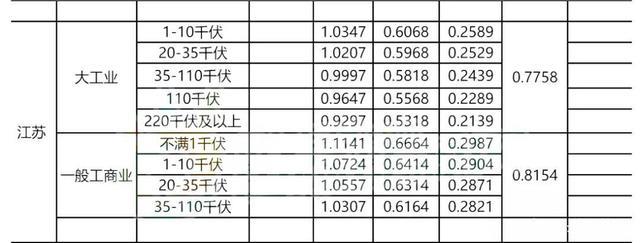 江蘇省電價(jià)價(jià)差表