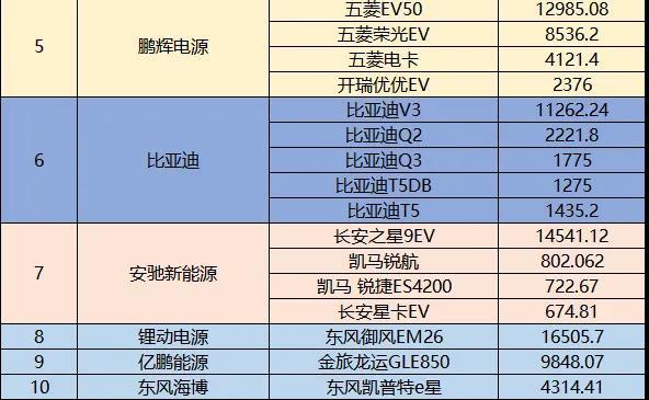 鵬輝電源為廣西汽車(chē)配套較多,五菱EV50、五菱榮光EV、五菱電卡均搭載鵬輝電源的動(dòng)力電池,電池裝車(chē)量分別是:12985.08kWh、8536.2kWh、4121.4kWh。