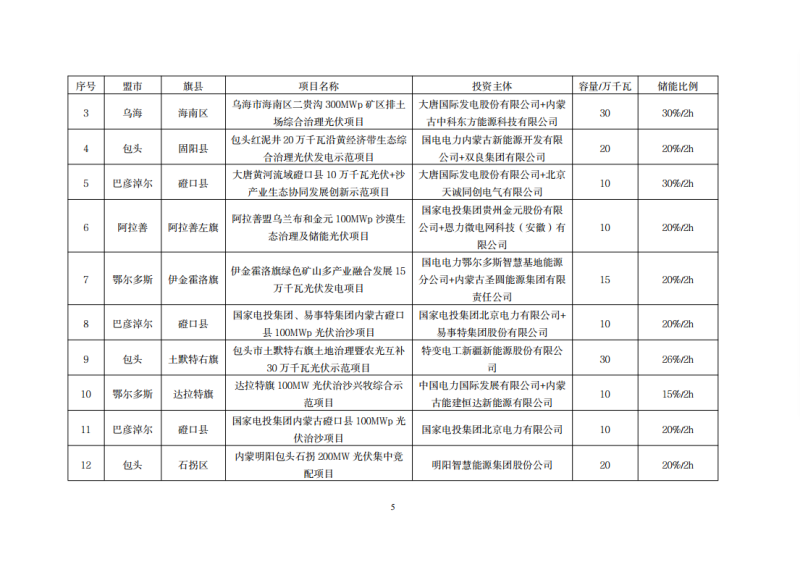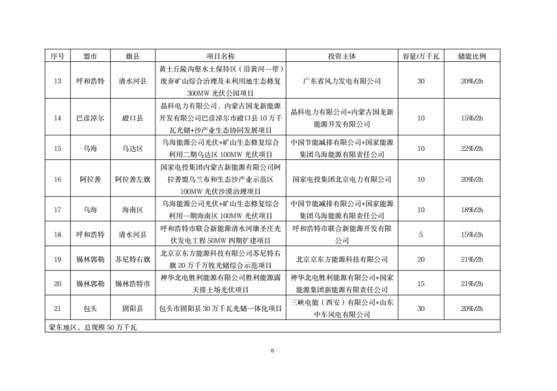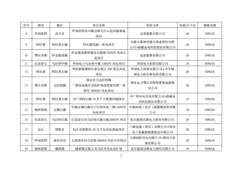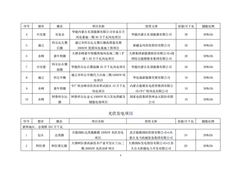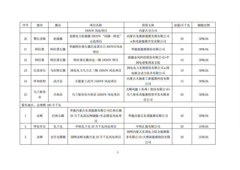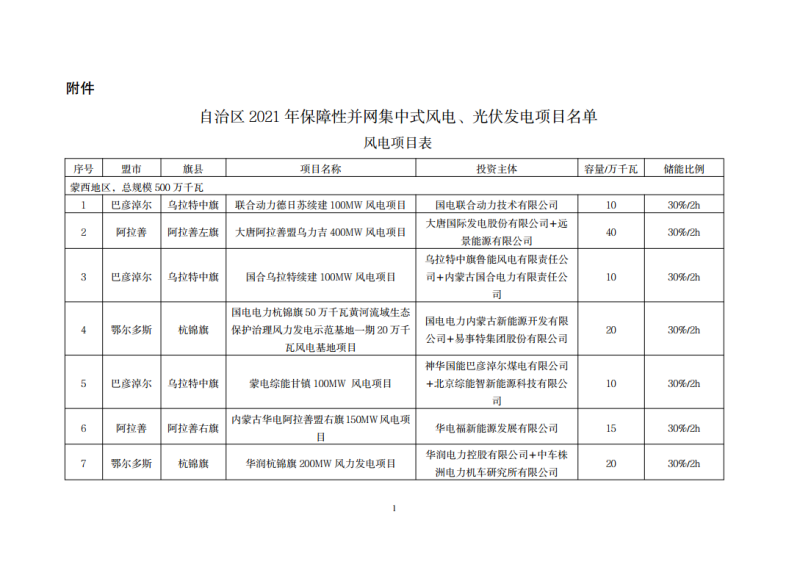 內(nèi)蒙古自治區(qū)2021年保障性風(fēng)光發(fā)電項(xiàng)目配置儲能一覽表