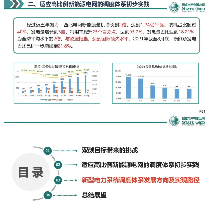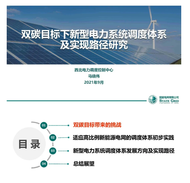 會(huì)上,國(guó)家電網(wǎng)有限公司西北分部調(diào)度控制中心主任馬曉偉做了題為“雙碳目標(biāo)下新型電力系統(tǒng)調(diào)度體系及實(shí)現(xiàn)路徑研究”的主旨報(bào)告,經(jīng)專(zhuān)家本人授權(quán),與大家分享。